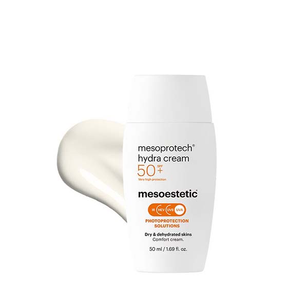 mesoprotech® hydra cream sun protection 50ml de mesoestetic es una crema de protección solar muy alta 50+ para pieles secas y deshidratadas. La combinación de filtros UV, protegen frente a la radiación ultravioleta UVB y UVA. Propiedades hidratantes y antioxidantes. Evita la evaporación de agua y mantiene el nivel óptimo de hidratación.